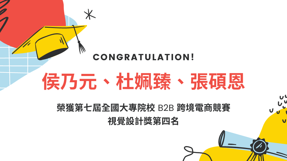 恭賀本系侯乃元、杜姵臻、張碩恩榮獲第七屆全國大專院校 B2B 跨境電商競賽