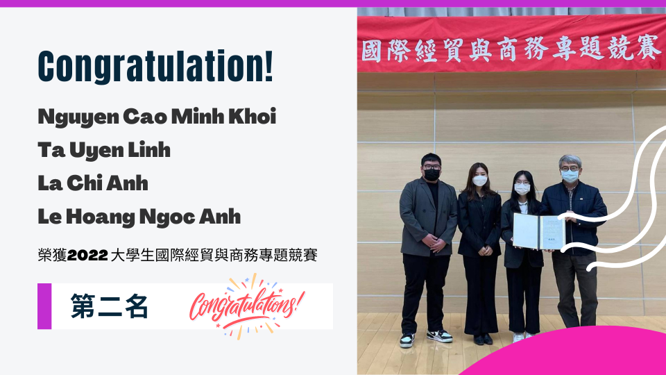 榮獲2022 大學生國際經貿與商務專題競賽第二名